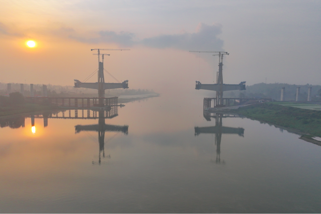 渠江特大桥位于四川省达州市渠县,是成达万高铁全线欺压性工程之一。