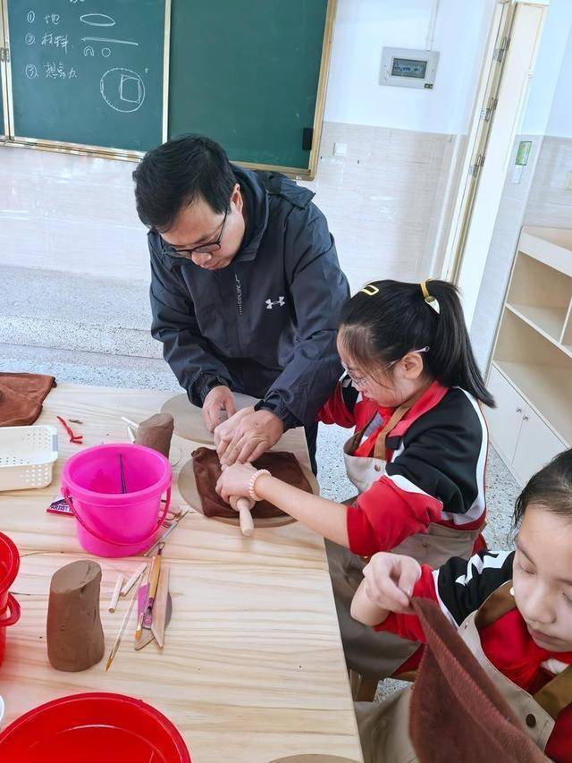 怀安窑非遗代表性传承东说念主刘经锋憨厚亲临陶艺室,为学生们带来了一堂活泼的陶艺课。同学们在刘憨厚的经心开发下,学习陶艺基本技法——“揉泥、塑性、修饰”,现场脑怒激烈,互动时常。